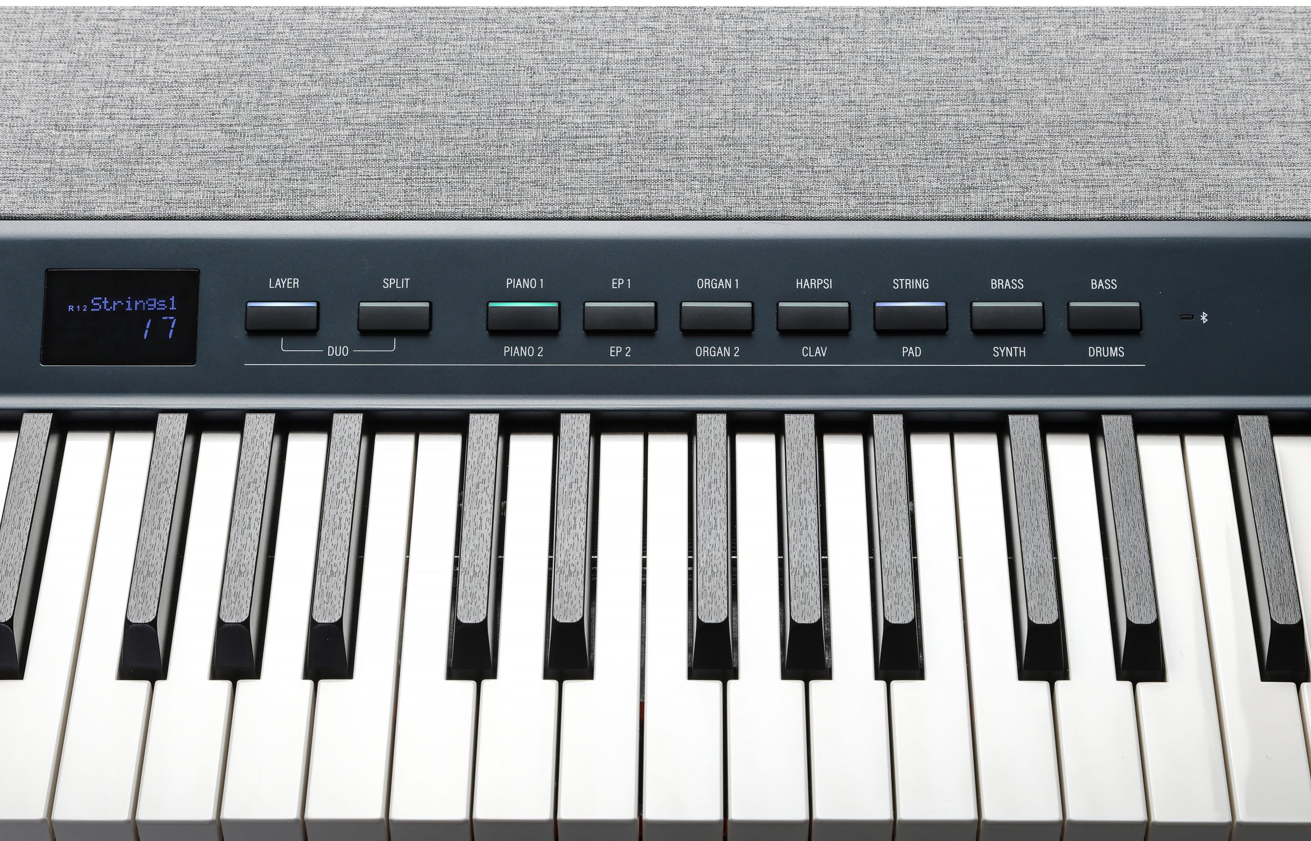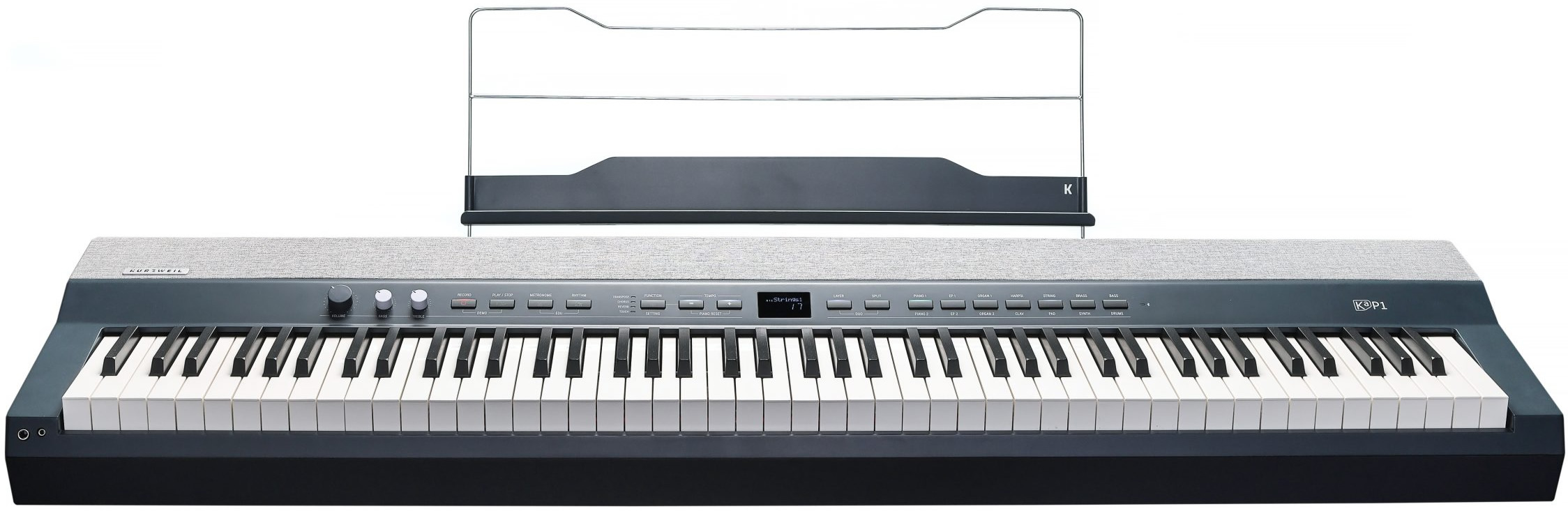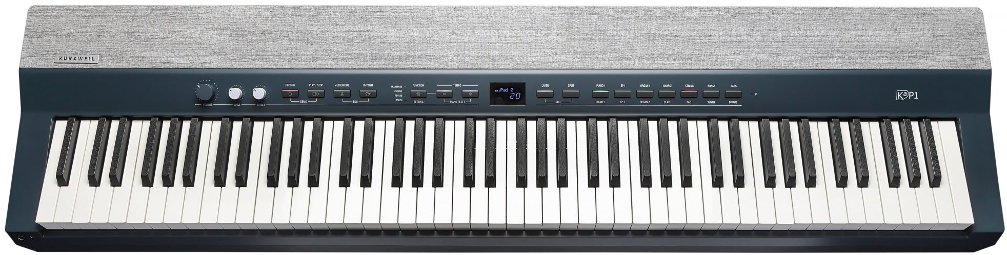 Портативне цифрове піаніно KA-P1. 88 клавіш з повнозваженою молоточковою механікою та 4 рівнями чутливості клавіш (H1 Ivory). LCD дисплей, звукова бібліотека KORE 2.0 (2GB), поліфонія 256 голосів, 28 програм (звуків), функціональність розділення та нашарування тембрів, транспонування, ефекти: Reverb, Chorus, EQ, 10 ритмічних патернів, рекордер на 1 трек, 1 пісню, акустична система 30 Вт (2 x 15Вт), аналогові входи: (1) 1/8? стерео, аналогові виходи: (2) 1/4? лівий/правий, вихід на навушники: (1) 1/4?, (1) 1/8?. MIDI по USB, Bluetooth: BT 5.2 Audio/MIDI, (1) вхід для педалі сустейн (одинарна педаль в комплекті), комплектація: DC блок живлення, педаль сустейн, пюпітр, USB кабель. Колір: блакитний, розміри: 11.7 х 33.5 х 131.6 см, вага: 19.7 Кг.