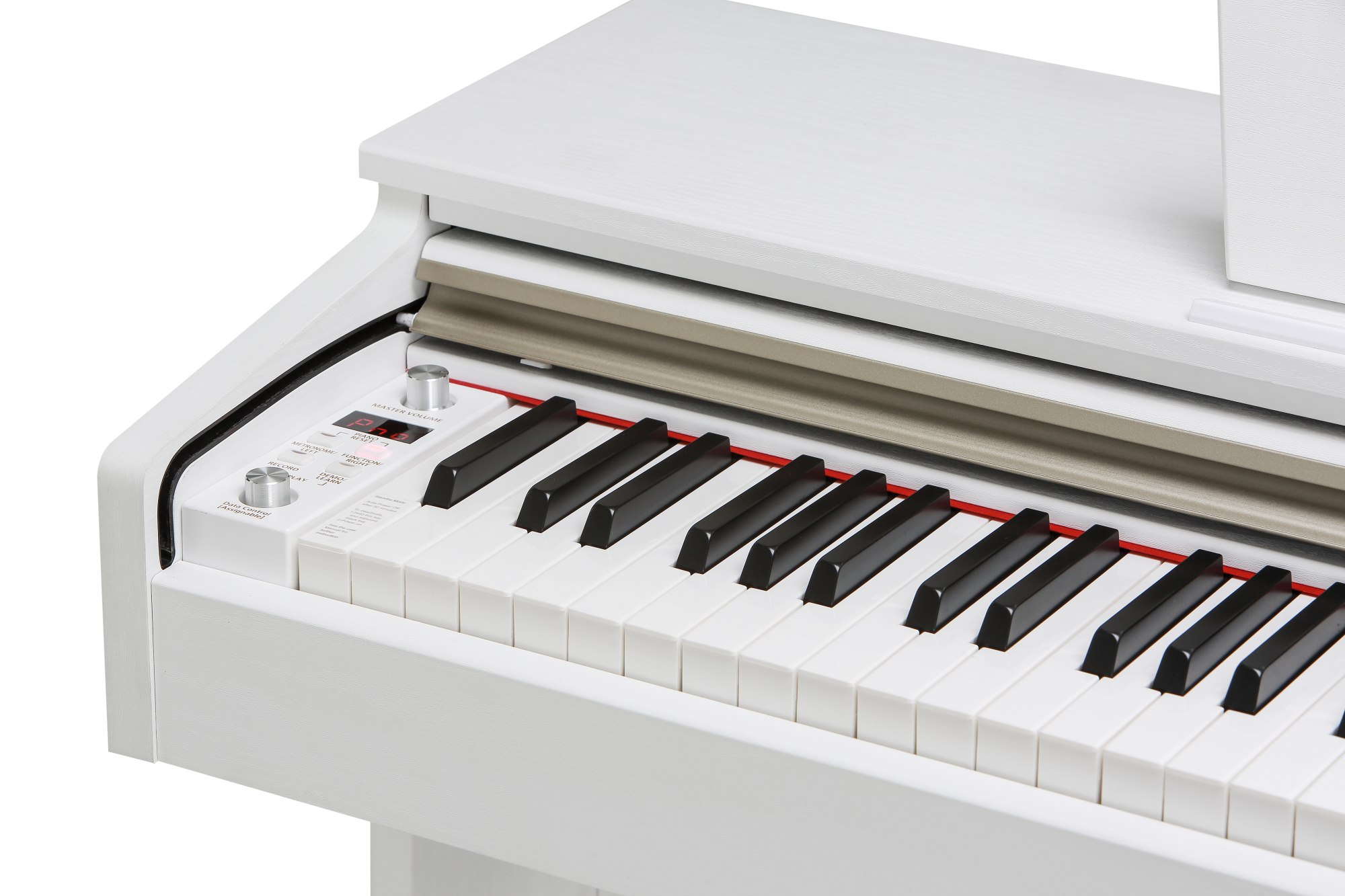 Цифровое пианино. 88 клавиш с полновзвешенной молоточной механикой и чувствительностью к силе нажатия. 64-голосная полифония. 16 пресетов, 16 демо композиций, акустическая система: 2 х 15 Вт, цвет: белый матовый, банкетка в комплекте. Размеры: 81.5 x 138 x 42 см, вес: 49 кг.