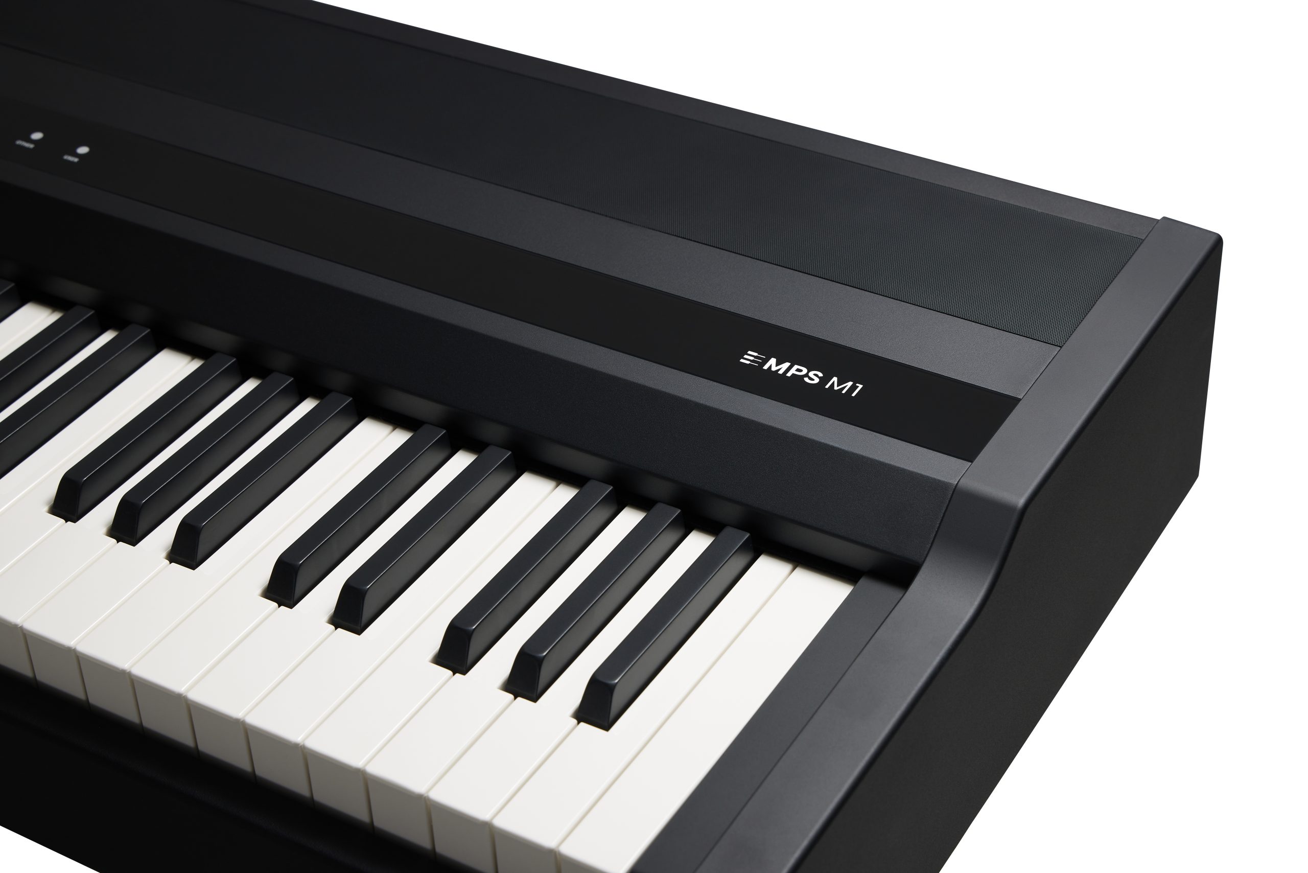 Цифрове сценічне піаніно MPS M1. Високоякісні семпли великого німецького 9-футового рояля з флагманської бібліотеки Kurzweil. Потужний аудіомеханізм нового покоління за фірмовою технологією автентичного синтезування тембрів A.T.S.T. Повністю зважена італійська клавіатура з молоточковою механікою Fatar TP110, 88 нот, з регулюванням чутливості. Вражаюча поліфонія у 256 голосів. Унікальне поєднання вінтажних та сучасних тембрів. Резонанс струн і демпферів, семпли відпускання клавіш фортепіано. Ефекти хорусу та реверберації. Розділення клавіатури та нашарування тембрів. Метроном, Bluetooth, однотрековий MIDI-рекордер на одну пісню. Вбудована аудіосистема з 4-х гучномовців потужністю 48 Вт. Розміри: висота 13 см, глибина 38 см, довжина 132 см. Вага: 17,7 кг