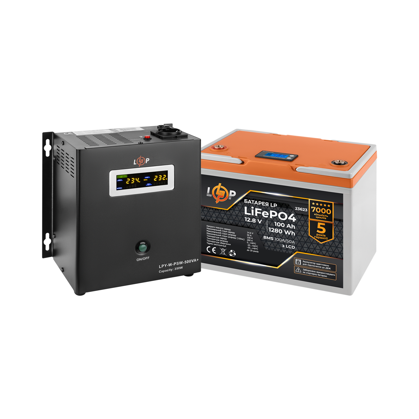Комплект акумулятор + UPS LogicPower ДБЖ + літієва (LiFePO4) батарея (UPS W500+ АКБ LiFePO4 1280Wh)