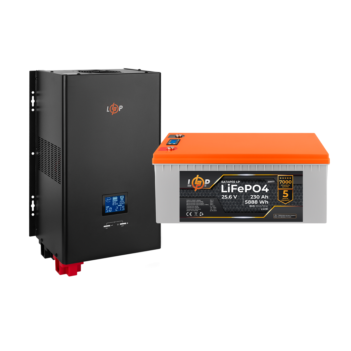 Комплект резервного живлення LogicPower ДБЖ з правильною синусоїдою 24V LPE-W-PSW-5000VA+ (3500Вт) 1-60A + Акумулятор LP LiFePO4 LCD 24V (25,6V) - 230 Ah (5888Wh) (BMS 200A/100A) пластик розроблено та введено в експлуатацію для забезпечення безперебійного живлення електричних газових котлів, систем відеоспостереження, комп'ютерної техніки та інших пристроїв, що працюють у режимі 24/7/365. Комплект може бути використаний як джерело безперебійного живлення для бомбосховища.