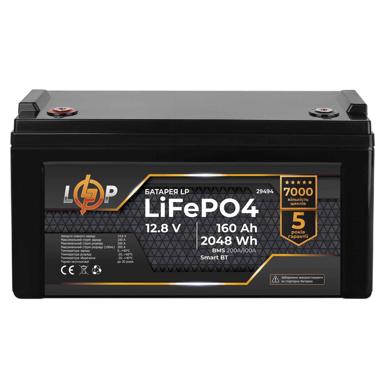 Акумулятор LogicPower LP LiFePO4 12,8V - 160 Ah (2048Wh) (BMS 200A/100А) пластик Smart BT