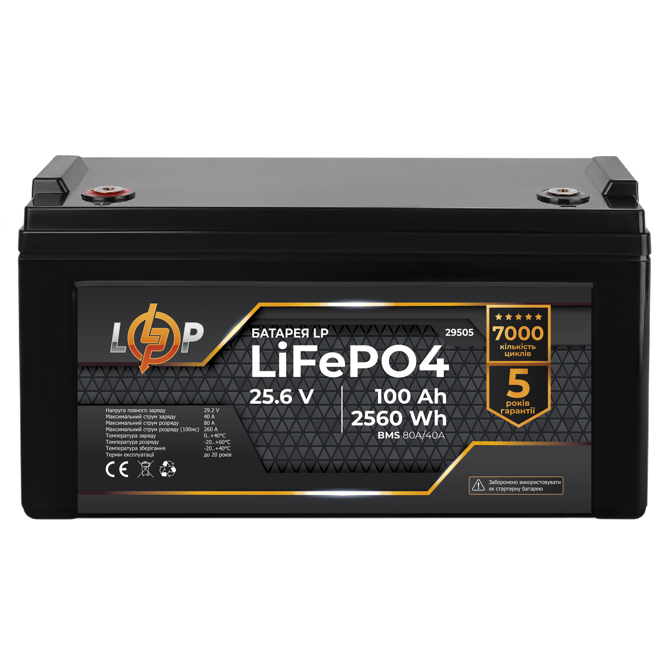 Акумулятор LogicPower LP LiFePO4 25,6V - 100 Ah (2560Wh) (BMS 80A/40А) пластик для ДБЖ
