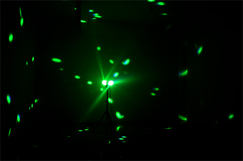 LED световой эффект вращающийся двойной шар, 4x 9 Вт 3-в-1 RGB LED, регулировка вращения, звуковая активация (ритмическая), потолочная или напольная установка, размеры 39,5x27,5x18,5 см, вес 2 кг.