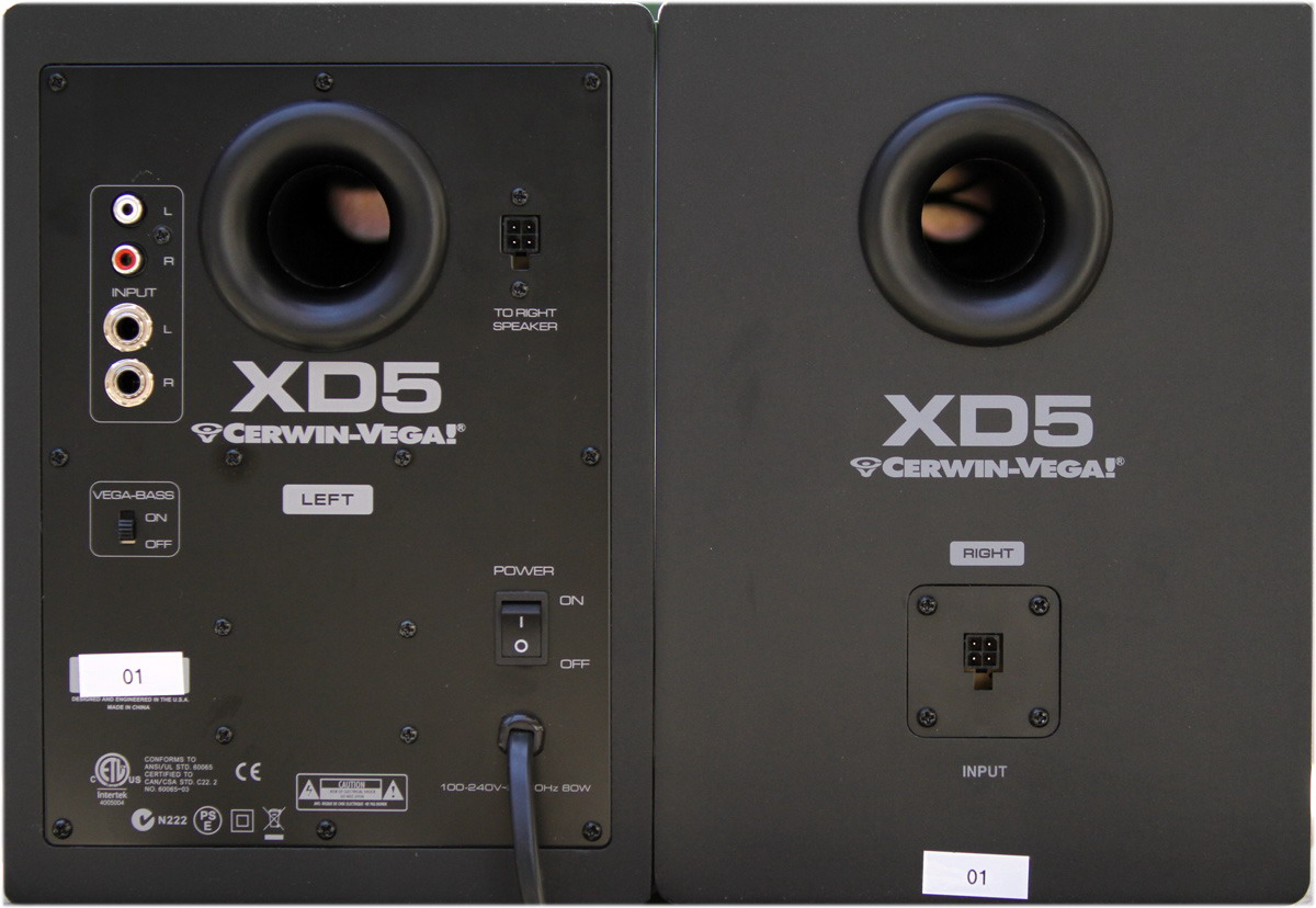 В отличии от пластиковой мультимедиа акустики, деревянные корпуса XD5 обеспечивают плотный бас и сводят к минимуму паразитные резонансы. Использование усилителей с малым коэффициентом шума обеспечивают комфорт вблизи и прозрачный звук на значительной громкости. Акустическая система Cerwin Vega оснащена функцией Vega-Bass повышающей НЧ составляющую.