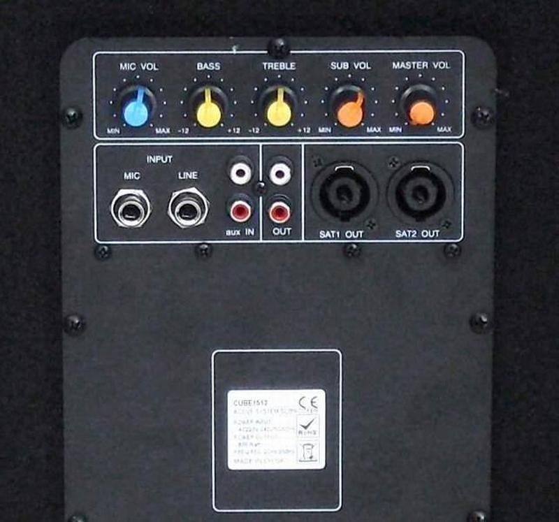 Акустический комплект 2.1 обладает полным комплексом звукоусиления в комплекте. Ibiza CUBE 1512 состоит из активного 800 Вт сабвуфера 15" и 3-полосных пассивных сателлитах 2х600 Вт. Система имеет отдельные регуляторы громкости сабвуфера и АС, низких и высоких частот и уровня громкости. В комплекте 2 стойки треноги, 2 чехла, 2 кабеля Speakon-Speakon длиной 5 метров.
