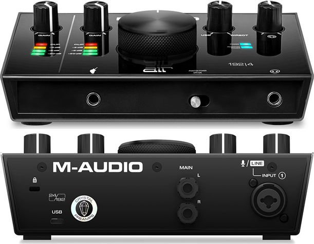 M-Audio AIR 192 4 многофункциональный USB-аудиоинтерфейс со студийным качеством записи 24-бит/192 кГц и интуитивно понятным управлением. AIR 192 4 позволяет одновременно записывать 2 канала используя балансный вход XLR/Jack и совершенно новый ¼ Jack инструментальный вход, который имеет специально разработанную повышенную ступень Hi-Z усиления.