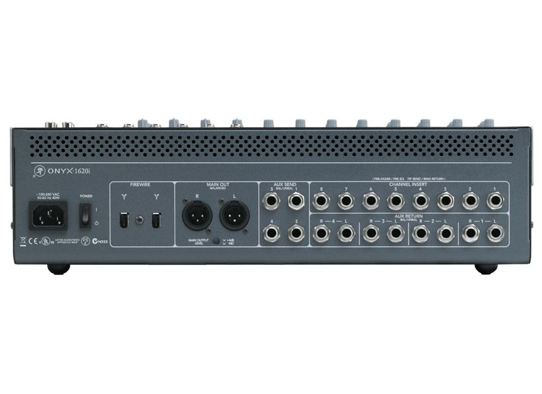 16-канальный микшер со встроенным 24-bit/96kHz FireWire интерфейсом, расширенным динамическим диапазоном, 8 балансных 1/4 Jack входа, 8 микрофонных предусилителей Onyx, 4-х полосный эквалайзер Perkins, 4 посыла (aux send), длинноходные 60 мм фейдеры.