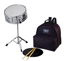 Металлический малый барабан 14x5.5", в комплекте стойка, палочки, тренировочный пэд, нейлоновый чехол-сумка.
