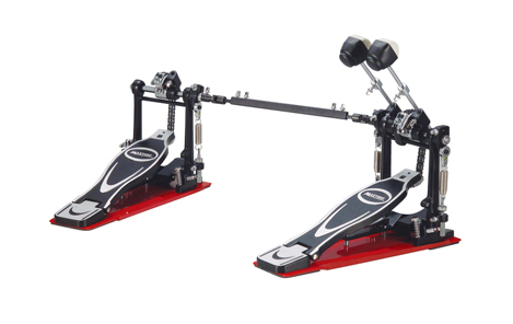 Двойная педаль "кардан" для бас барабана с 2-мя футбордами, 2-й цепной привод, 2-х сторонние колотушки (фетр, пластик).