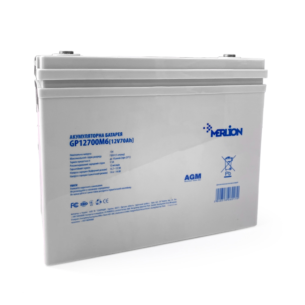 Аккумуляторная батарея MERLION MLB-12-90 Тип аккумуляторной батареи: AGM Тип электролита: сгущённая кислота в виде силикагеля Тип клемм: Т10 Расположение клемм: сверху Номинальное напряжение: 12 V Номинальная емкость: 90 Ah Максимальный ток заряда: 22,5 A Напряжение подзаряда в буферном режиме: 13.6 - 13.8V (25°C) Напряжение подзаряда в циклическом режиме: 14.5 - 14.9V (25°C) Количество циклов: От 200 до 1200, в зависимости от глубины разряда (100%-20%) Ток короткого замыкания: 3000A Внутреннее сопротивление: 5,5 Ом Допустимый температурный режим: от -20°С до +60°С Оптимальный температурный режим: 25С Потеря емкости при хранении за 1 год при температуре 25С: 25% Цвет: Чёрный Срок службы: до 7 лет Количество в упаковке: Габариты с клеммами: 331 х 173 х 233 мм Габариты без клемм: 331 х 173 х 213 мм Вес: 26 кг