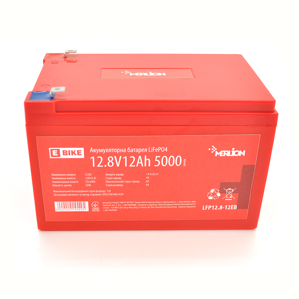 Літій-залізо-фосфатний акумулятор Merlion LiFePO4 12.8V 12AH – топовий акумулятор на довго! Застосовується для електротранспорту (електромобіля, електровелосипедів, машин для гольфу та ін), систем безперебійного живлення, в сонячній / вітровій енергетиці, освітлювальному устаткуванні. особливості: