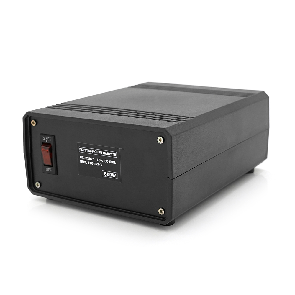 Перетворювач напруги понижувальний використовується для зниження напруги 220В до напруги 110В для роботи електротехніки, орієнтованої на країни з відповідним стандартом електромереж.