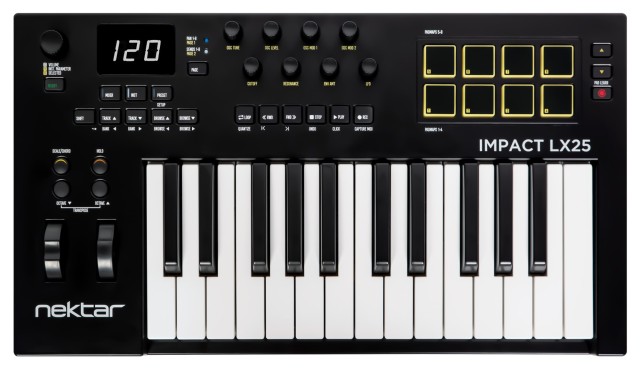 USB MIDI-контроллер, 25 полноразмерных клавиш, чувствительных к скорости нажатия (Auto-Mapping), 16 чувствительных к скорости RGB пэдов+функцией Note Repeat, 8 регуляторов и кнопок, 9 назначаемых фейдеров,