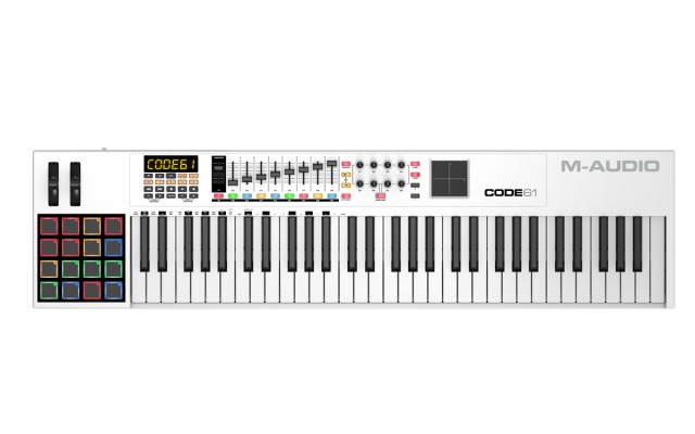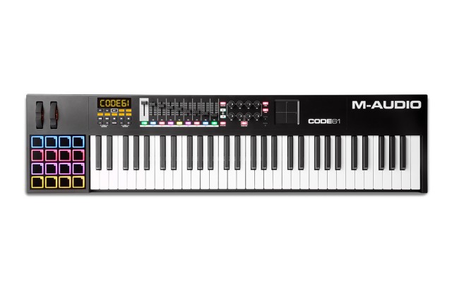 61-нотный USB MIDI-контроллер с чувствительной к скорости нажатия клавиатурой, функция aftertouch, транспонирование и октавный сдвиг, 16 пэдов, 8 энкодеров, 9 фейдеров, X/Y тачконтроллер.
