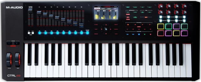 49-нотный USB MIDI-контроллер с чувствительной к скорости нажатия клавиатурой, функция aftertouch, транспонирование и октавный сдвиг, 16 пэдов, 8 энкодеров, 9 фейдеров, X/Y тачконтроллер.