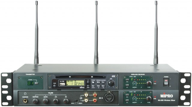 MA-909 – это беспроводной микшер для беспроводных систем звукоусиления MIPRO. В этой новой интегрированной беспроводной коммутируемой звукоусилительной системе управляющий микшер вынесен как отдельное устройство. В отличие от традиционных систем, где плеер компакт-дисков или кассет, приемник радиосистемы и управляющий микшер располагаются внутри корпуса вместе с динамиком и усилителем. Микшированный сигнал от MA-909 может быть передан без помощи проводов на коммутирующий приемник, установленный на одной или нескольких активных колонках системы, позволяя таким образом расположить микшер в любом удобном месте, не применяя неудобных соединительных шнуров.