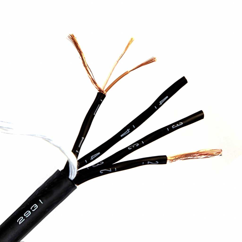 4-канальный мультикорный кабель,сечение 0.15 мм²,жила 30/0.08A мм,дренажная жила 7/0.18TA(0.18мм²), спиральный экран из отожженной меди 58/0.10A,180 г/м;Ø-8.6 мм,изоляция XLPE/PVC/PVC,цвет: черный.