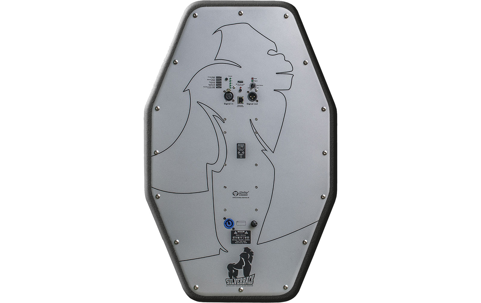 Monkey Banana Silverback сочетает в себе типичные характеристики коаксиальных излучателей с мощным звуком и низкими резонансами корпуса. Управляемый цифровым DSP, монитор обеспечивает настоящий полнодиапазонный контроль материала без применения сабвуфера, обеспечивая чрезвычайно высокий уровень звукового давления.