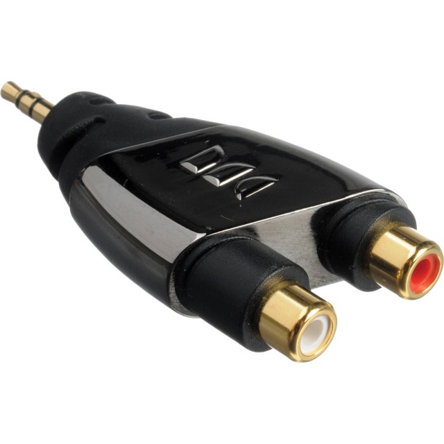 Переходник Y-образный стерео 3.5 мм (1/8) TRS Jack «папа» - 2 х RCA (тюльпан) «мама», без распределения сигнала, пластиковый корпус.
