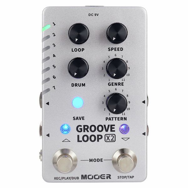 Комбінована педаль Groove Loop X2 ідеально підходить як для репетицій, так і для виступів на сцені, забезпечуючи функціонал лупера та драм-машини. Лупер X2 має 14 слотів для збереження з фрагментами тривалістю до 10 хвилин у кожному слоті. Управління знайоме, з можливістю включення/вимкнення режиму відліку та автоматичного режиму, що запускає лупер після детекції сигналу. Ця педаль також має функцію Time Stretch, що дозволяє змінювати швидкість відтворення без впливу на висоту звуку.