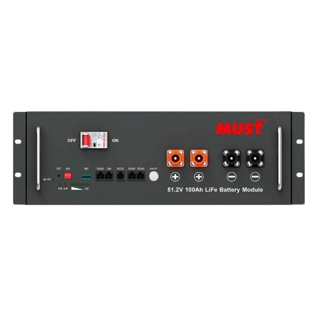 Акумуляторна батарея MUST LP28-48200 - це професійний літій-залізо-фосфатний (LiFePO4) накопичувач енергії високої ємності. З номінальною напругою 51,2 В та ємністю 200 Ач вона забезпечує запас енергії 10,24 кВт*год
