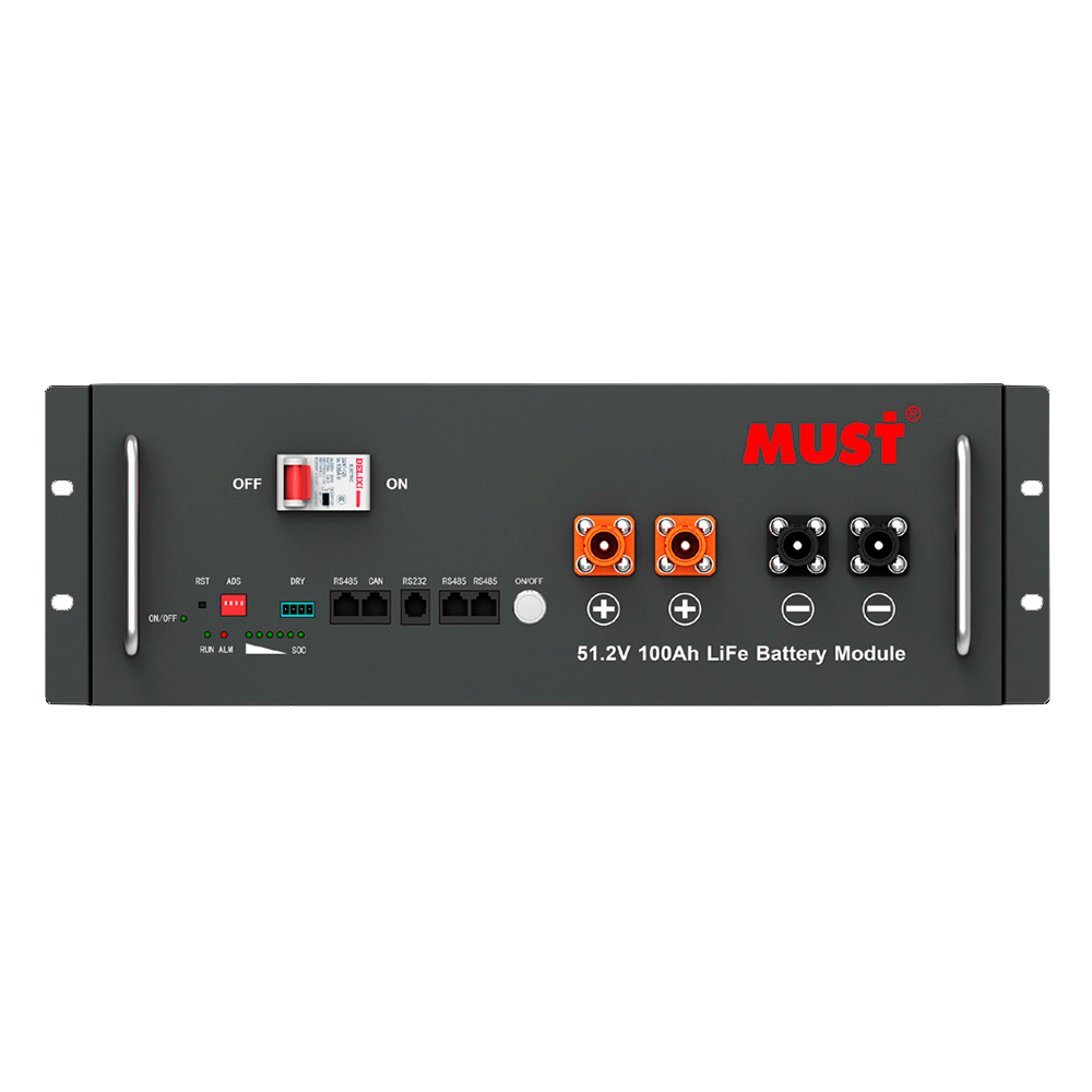 Акумуляторна батарея Must LiFePO4 51.2V 100Ah - це надійне та ефективне джерело живлення, яке призначене для монтажу у стійку. Батарея має компактні розміри (482 x 480 x 133) та важить 44 кг, що робить її зручною та легкою в установці. Вона забезпечує стабільне харчування протягом тривалого часу та відрізняється високою ємністю 100 ампер-годин.
