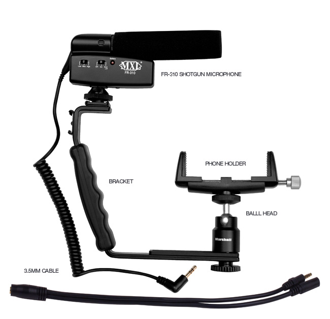 MXL MM-VE001 звукозаписывающий, медийный набор состоит из микрофона и крепления, разработанного специально для установки на мобильном телефоне для последующего проведения удобной и качественной видеосъемки.