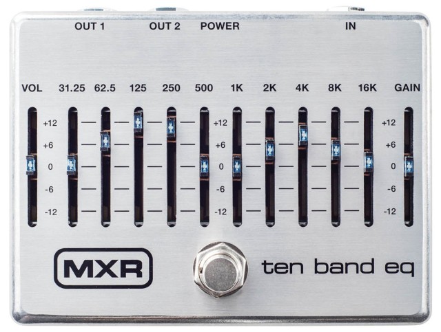 Еквалайзер Перемикач на корпусі вмикає / вимикає ефект (слайдери засвічуються при вмиканні, 10 слайдерів з діапазоном ± 12дБ з частотними центрами 31.25Гц, 62.5Гц, 125Гц, 250Гц, 500Гц, 1кГц, 2кГц, 4кГц, 8кГц, 16кГц, роздільне регулювання вхідної чутливості і вихідного рівня (± 12дБ)
