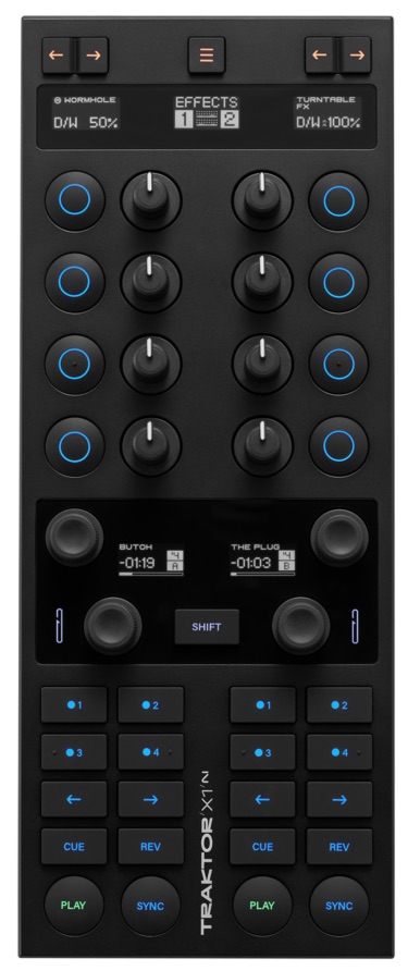 Новинки: полный контроль над деками и эффектами в Traktor Pro 3; 5 OLED-дисплеев показывают информацию о треках и состоянии эффектов; визуальная обратная связь благодаря настраиваемой пользователем цветов кнопок; новая система подсветки подчеркивает, когда трек почти заканчивается или находится в лупе; черный дизайн с прозрачной частью корпуса; 4 вращающихся энкодера для просмотра каждой деки; 20 кнопок управления транспортом.