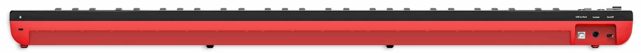 MIDI-контроллер, 61 динамическая клавиша синтезаторного типа, 4 кривых скорости + 3 фикс.,4 кнопки: октава +/-, запуск/остановка, колеса pitch-bend/модуляция, 30 мм фейдер, 1/4 вход сустейн, MIDI CC.