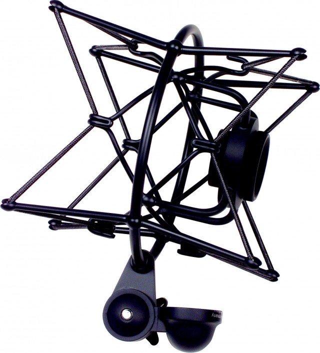 Эластичный подвес типа «паук» для микрофона Neumann U 87 Ai, посадочная резьба 5/8"-27 с переходником для резьб стоек: 1/2"-3/8", цвет: матовый черный.