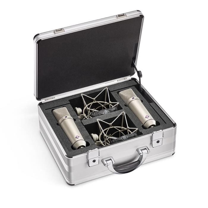 Подобранная стереопара микрофонов Neumann U87 Ai, первоклассно зарекомендовали себя в раздельных стереосистемах: АВ и Mid/Side, в комплекте: 2 микрофона U 87 Ai (нинкель), 2 эластичных подвеса EA 87 (нинкель), 2 защиных чехла, алюминиевый кейс.