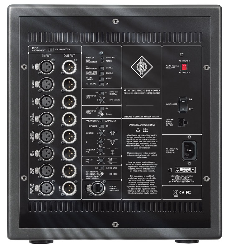 Сабвуфер KH-810G разработан для дополнения широкого выбора мониторов Neumann, и может использоваться как отдельно, так и быть последовательно подключенным.