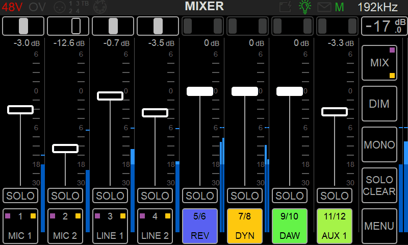 4 независимых микшера с интегрированной кнопкой talkback (2 выхода internal на входной канал для записи пред-FX и/или пост-FX)