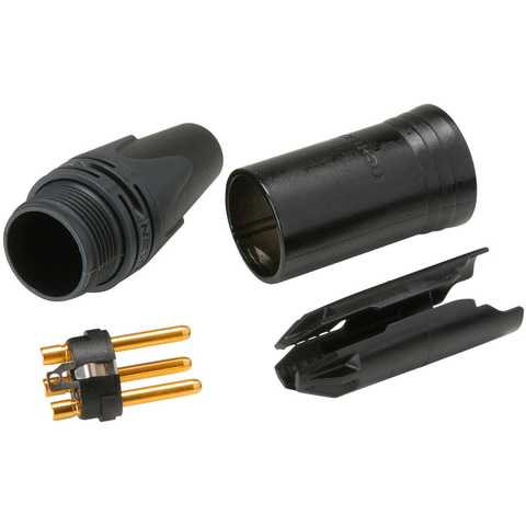 Коммутация для кабеля, 3-контактный штекер с черным катодным покрытием CDC/KTL и позолоченными контактами.