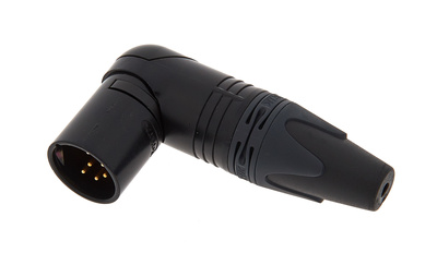 Профессиональный угловой 6-контактный XLR разъем «папа» с черным корпусом, позолоченными контактами и 5 позициями поворота корпуса.