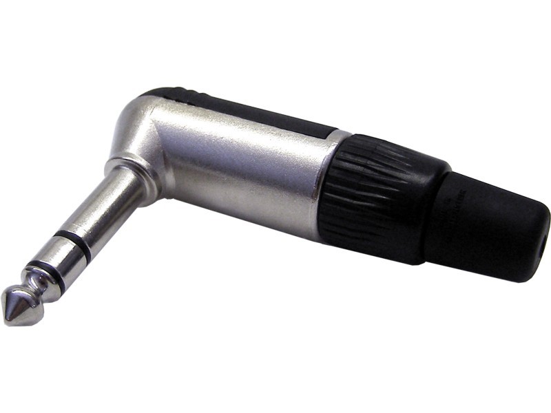Профессиональный 3-х контактный угловой 6,3 мм TRS Jack c никелированными контактами и серым металлическим корпусом.