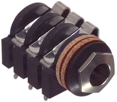Балансное 3-х контактное 1/4 TRS Jack гнездо для монтажа на плату с никелированными контактами и хромированным корпусом.