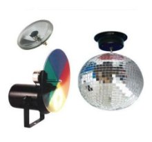 Набор для создания диско атмосферы, включает в себя: зеркальный шар - 20 см (8\"), мотор 5 об/мин, светильник Pinspot PAR36(лампа NS4515 в комплект не входит).