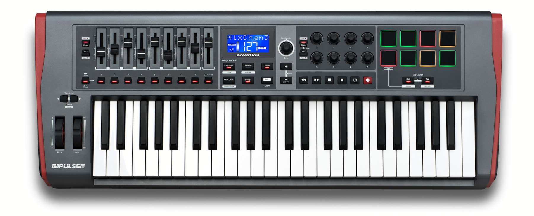 Impulse – новейшая линейка профессиональных USB/MIDI контроллеров. Все модели этой линейки оснащены высококачественной клавиатурой и интуитивным управлением. Простота настройки и управления обеспечивается инновационным ПО Novation Automap 4, которое сделает Вашу работу в любимом секвенсоре простой и увлекательной. Impulse также оборудован восемью барабанными пэдами с подсветкой, которыми можно управлять арпеджио, набивать партии, или запускать клипы в Ableton Live.