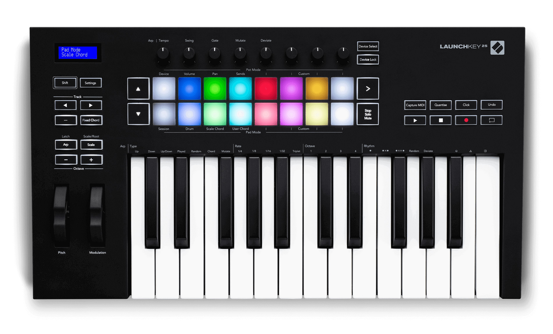 Novation LaunchKey 25 Mk3 - третье обновление серии клавишных контроллеров LaunchKey. LaunchKey 37 Mk3 стал универсальным центром для подключения, управления и создания музыки в DAW. Многофункциональный аппаратно-программируемый контроллер служит в первую очередь для создания музыки в Ableton Live.