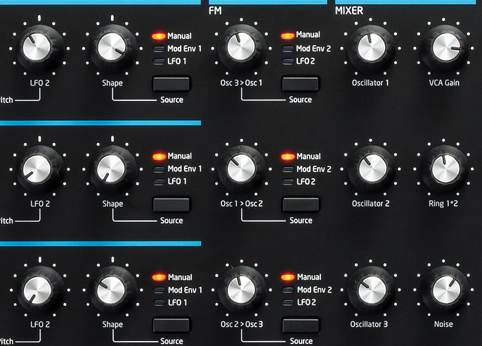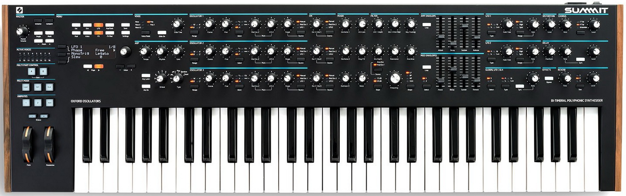 - Новые цифровые генераторы Oxford дают больше частотной модуляции (FM) и волнового синтеза. Формы сигналов генерируются непосредственно на микросхеме FPGA (Field Programmable Gate Array) с использованием обработки с битовым потоком 24 МГц. Особенностью работы является регулируемая погрешность и расхождения, присущие и часто встречаемые в аналоговых цепях. Помимо этого, каждый голос инструмента поддерживает до трех осцилляторов, работающих в режиме аналоговой эмуляции.