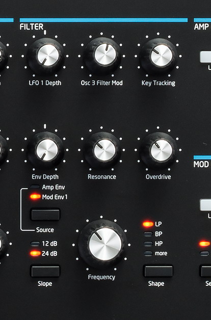 Тракт аналогового стереосигнала состоит из двух аналоговых модуляционных фильтров, аналоговых VCA и трех ступеней аналогового дисторшина - до/после фильтра и после VCA. Имея корни легендарного OSCar и Bass Station II, аналоговые возможности Summit действительно впечатляют.