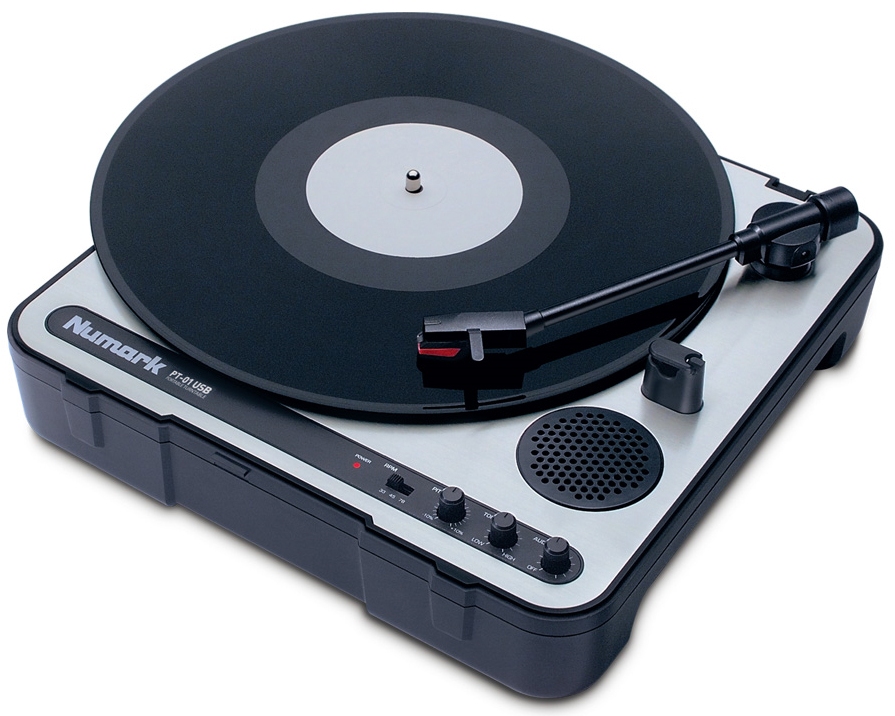 Numark PT-01 - портативный проигрыватель винила оснащенный 7-дюймовым диском. Защищенная от внешних воздействий прочной и элегантной внешней крышкой, вертушка укомплектована эргономичной ручкой для переноски. При весе устройства в 2.04 кг и габаритных размерах 304.8 x 304.8 x 98.43 мм делает ее предельно мобильной и удобной при переноске и эксплуатации. Проигрыватель легко вмещается в сумку вместе с 12-ю пластинками.