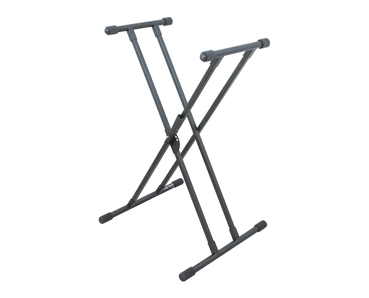Профессиональная Х - образная двойная стойка для клавишных инструментов. Стойка обладает внушительной жесткостью благодаря использованию усиленного толстого металлического профиля толщиной 18 мм выдерживающего до 90 кг веса инструмента. Фиксатор quikSQUEEZE™ штыревого типа надежно фиксирует стойку в одном из 5 положений. В дополнение стойка имеет небольшой вес, что позволяет брать ее вместе с инструментом. На каждую из 4-х трубок надеты резиновые ножки предотвращающие скольжение инструмента и стойки.