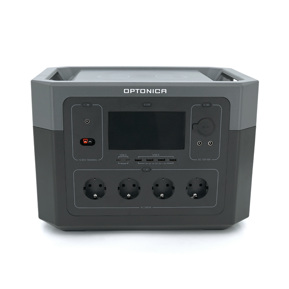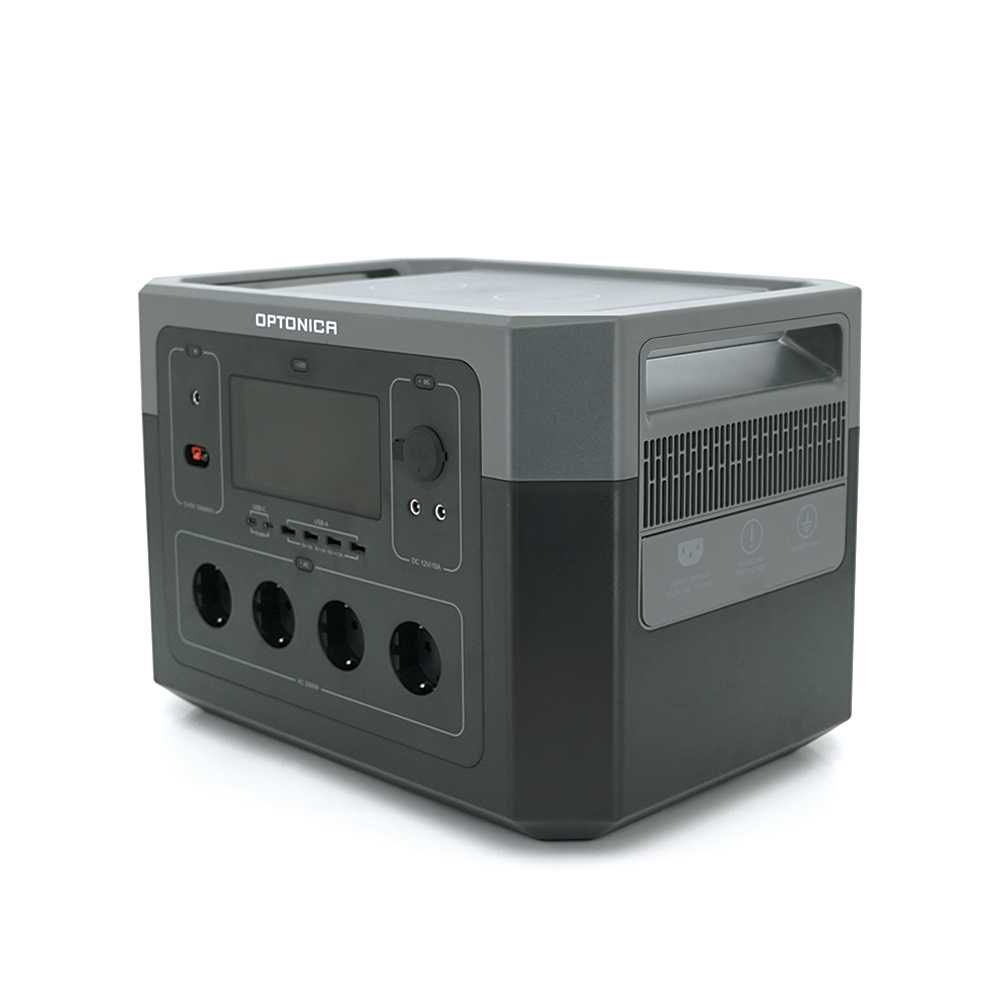 Портативна електростанція Optonica B2000-A1 2000W – енергетична незалежність професійного рівня. Представляємо флагманську модель у лінійці портативних електростанцій – Optonica B2000-A1 з рекордною ємністю 2096 Вт·год та потужністю 2000 Вт. Це професійне рішення для повного енергозабезпечення за умов повної автономії. Пристрій здатний живити потужні побутові прилади, включаючи електрочайники, мікрохвильові печі та електроінструмент, що робить його незамінним для будівельних майданчиків, виїзних заходів, тривалих експедицій та резервного живлення заміських будинків. Станція встановлює нові стандарти мобільної енергетики, пропонуючи можливість заряджання від різних джерел: стандартної мережі 230В, автомобільного прикурювача або сонячних панелей через порт Anderson. Вбудована бездротова зарядка до 20 Вт та численні порти забезпечують одночасну роботу цілого парку пристроїв – від смартфонів до професійного обладнання. - Потужність 2000 Вт з піковим навантаженням до 4000 Вт для роботи енергоємних приладів