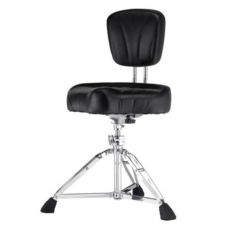 Стул барабанщика со спинкой серии Roadster, мотоциклетное сиденье, 3 двойных ножки, винтовая система, вертикальная и горизонтальная регулировки спинки, высота 495-665 мм, ПВХ седло и спинка.