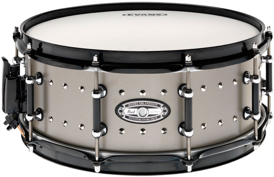Малый барабан 14х5.5", именная модель Daniel Erlandsson, корпус из нержавеющей стали, штампованные черные обручи Black Superhoop II, 10 лагов, болты SST-5047, стрейнер SR-015, подструнник SN-1420I.