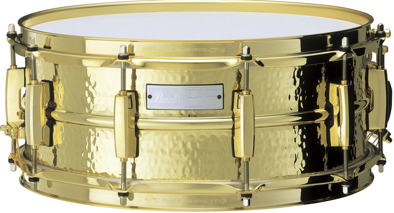 Малый барабан 14х5,5", именная модель Jimmy DeGrasso, корпус из кованной латуни, золотистая фурнитура, штампованные обручи Super Hoop II, 10 лагов CL-55G, болты SST-5052, стрейнер SR-17AG/SR-18EG, подструнник SN-1420D.